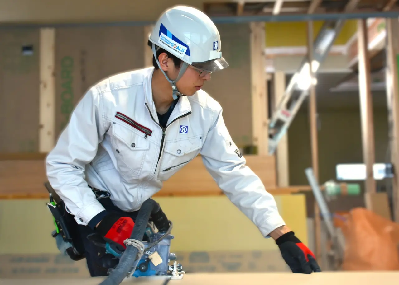 別の現場では、室内の仕上げ作業に取り組む大工の姿も見ることができました。床や壁を丁寧に仕上げていく作業は、完成後には見えなくなる部分も多くありますが、その積み重ねが住まいの快適さを支える大事な仕事です。